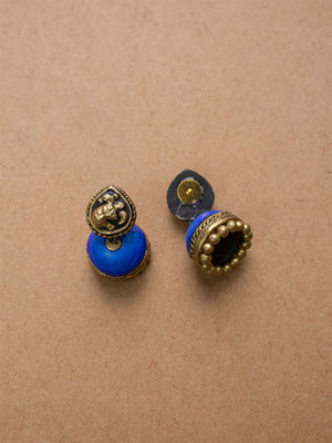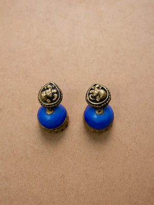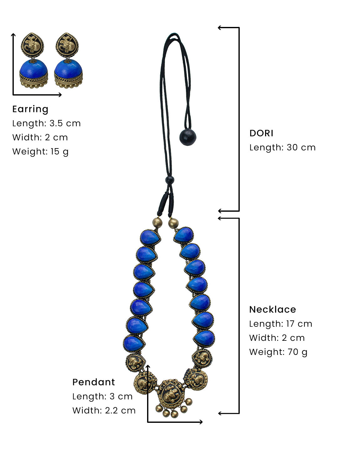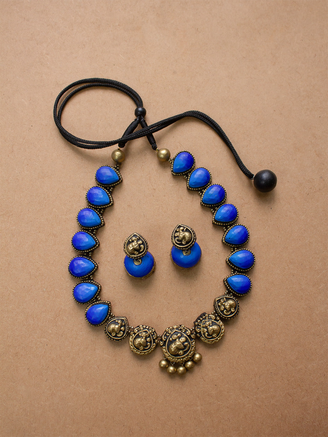 Antique Gold Shades of Blue Peacock Design Handmade Terracotta Necklace Set