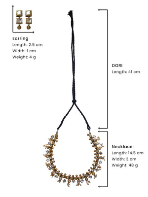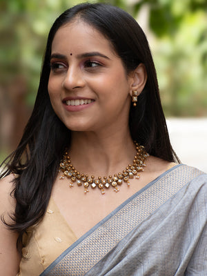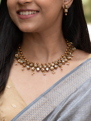 Antique Gold Square Circular Design Kundan Fusion Handmade Terracotta Necklace Set