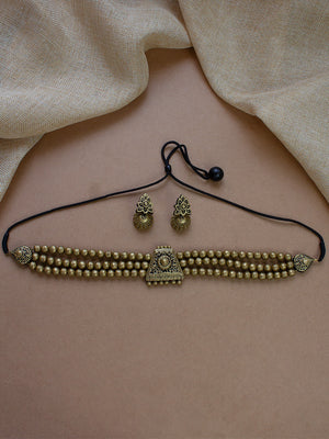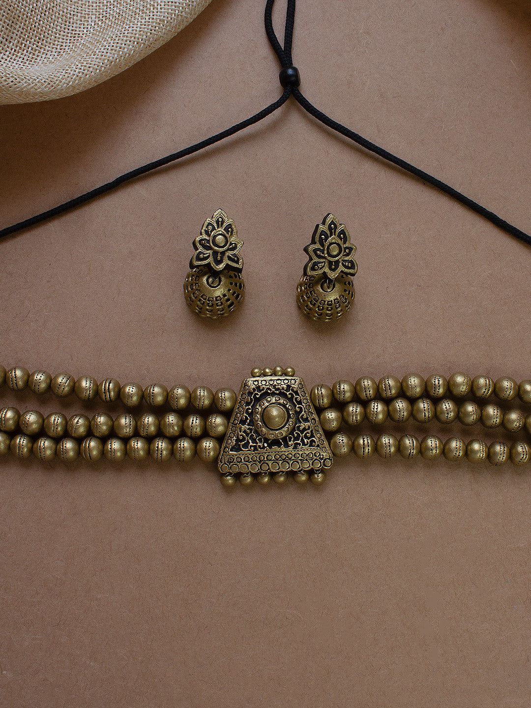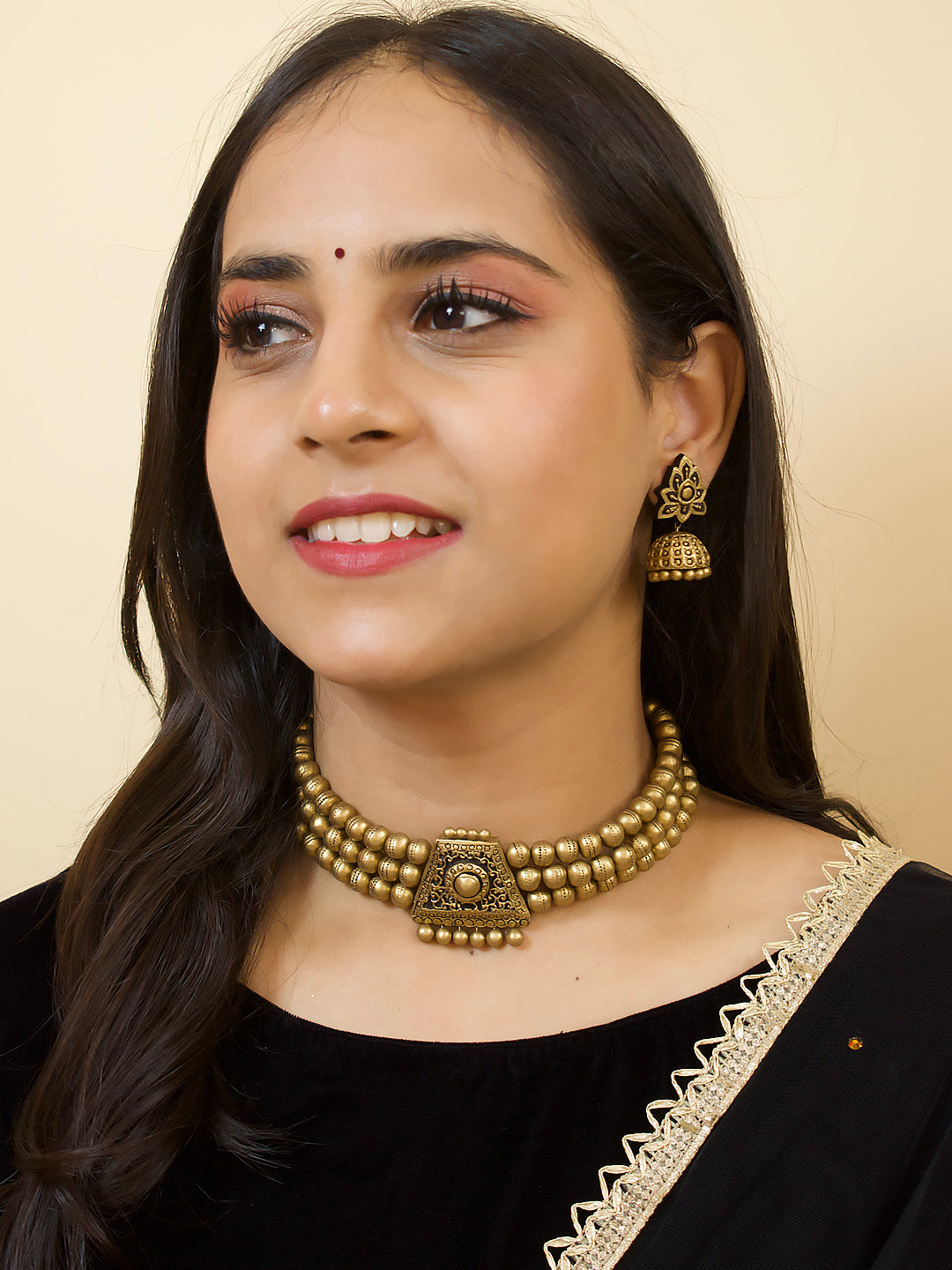 Antique Gold Three Layered Victorian Choker Terracotta Necklace Set