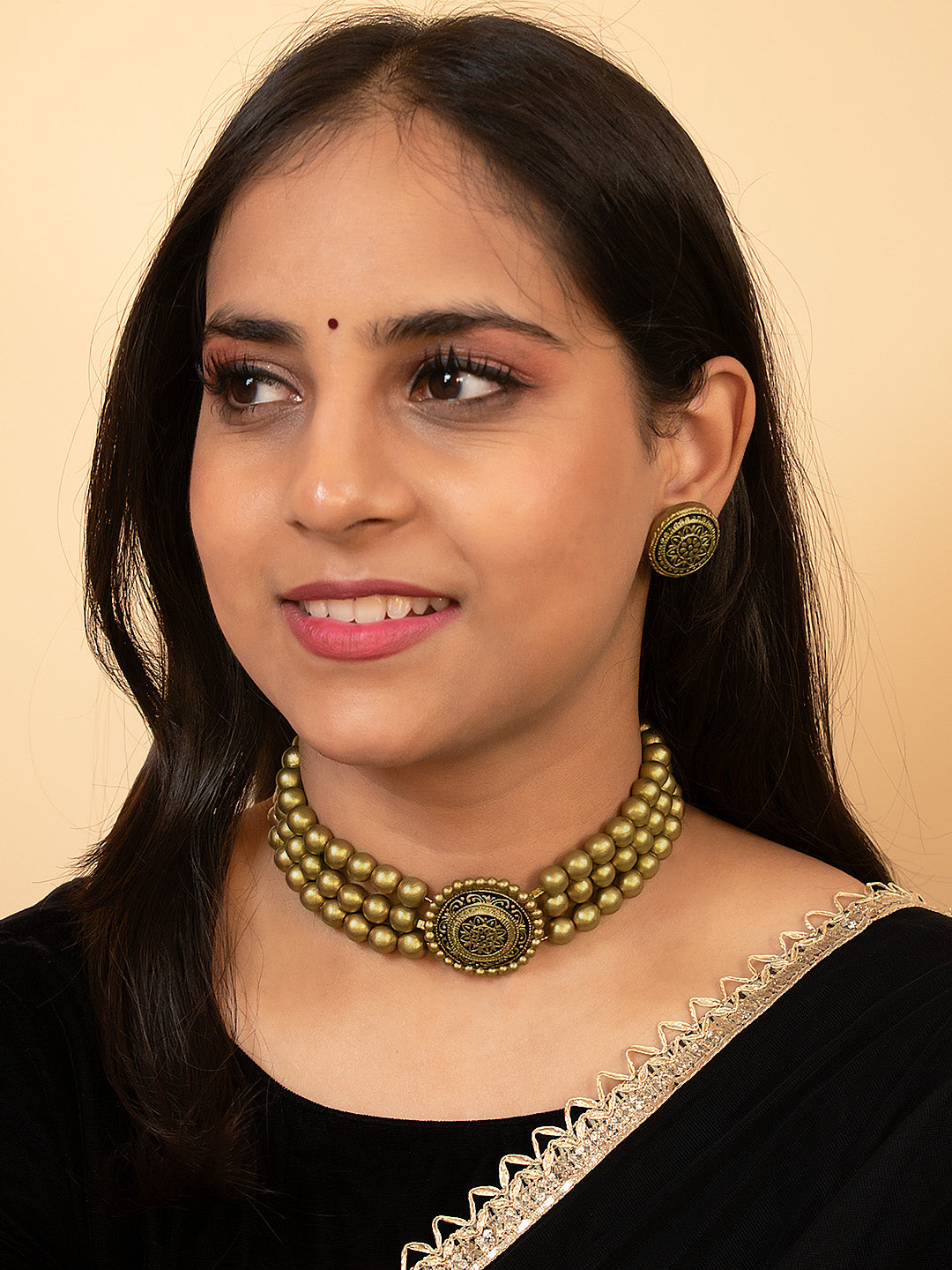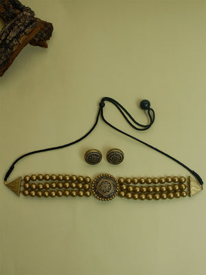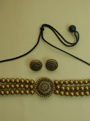 Antique Gold Victorian Choker 3 layered Handmade Terracotta Necklace Set