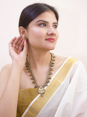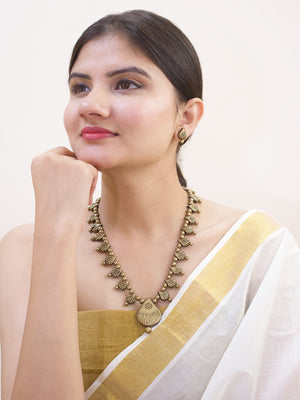Antique Gold Toned Tear Drop Design Pendant Terracotta Jewellery Necklace Set