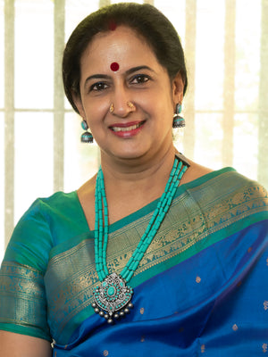 Shubhrangi — Aqua Blue Silver Three Layered Victorian Haram Style Handmade Terracotta Necklace Set