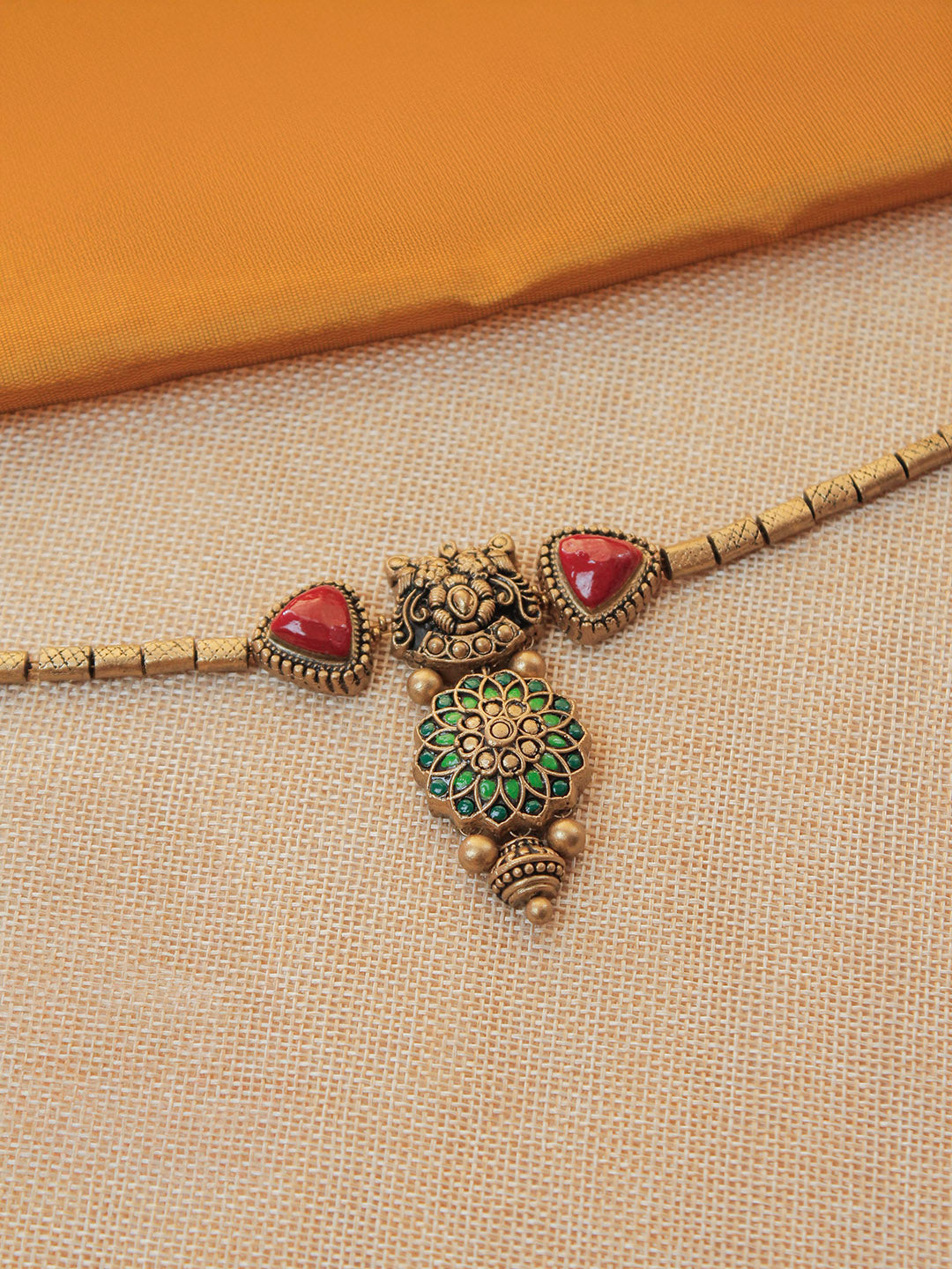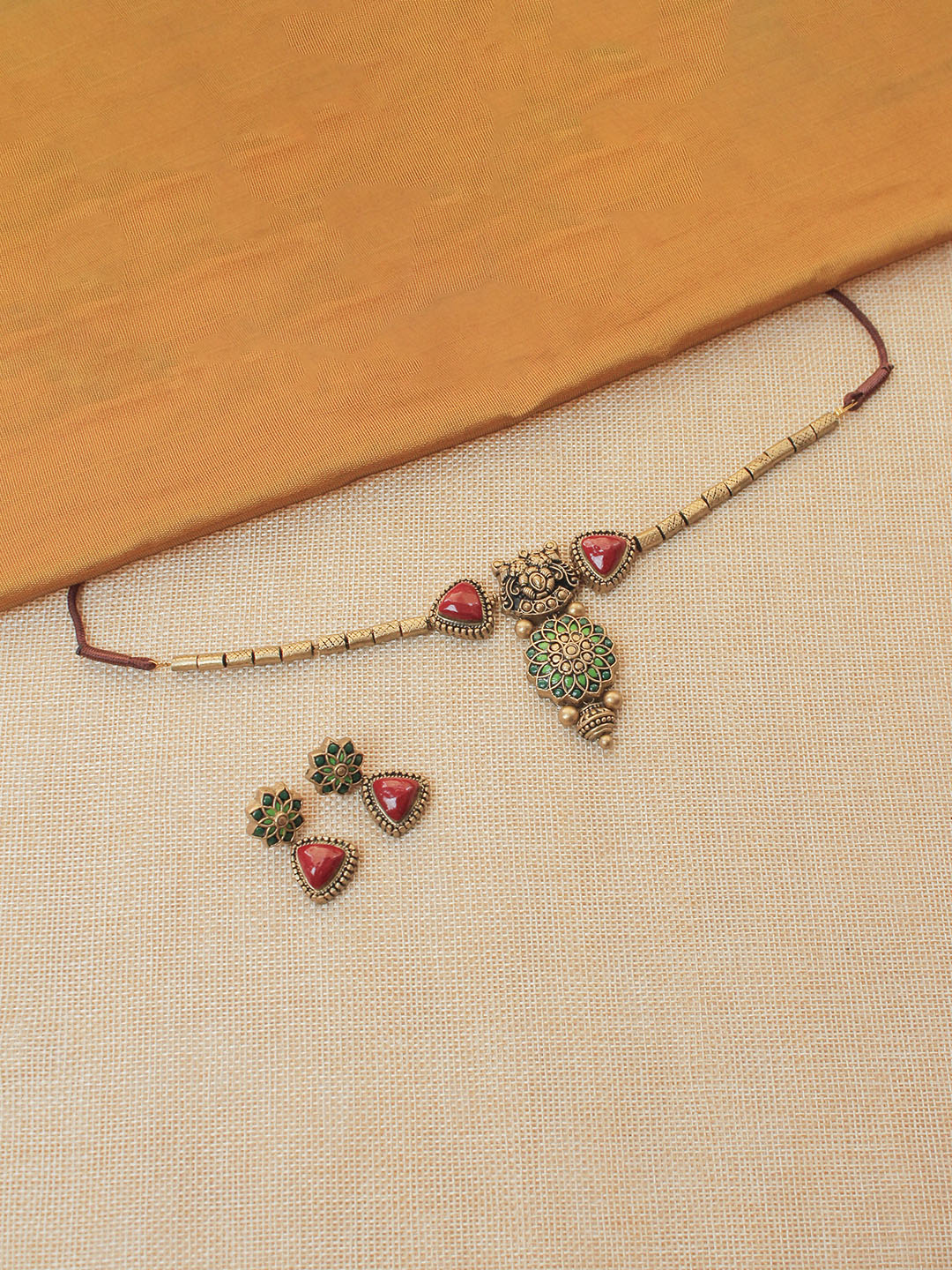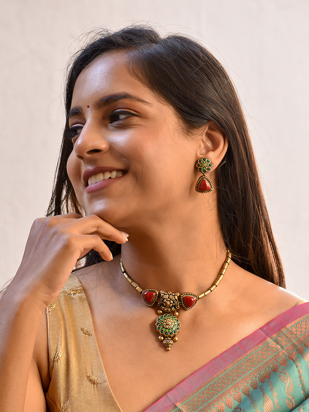 Aaradhya — Beautfully Handcrafted Floral Design Gold, Red, and Green Jewelry Set
