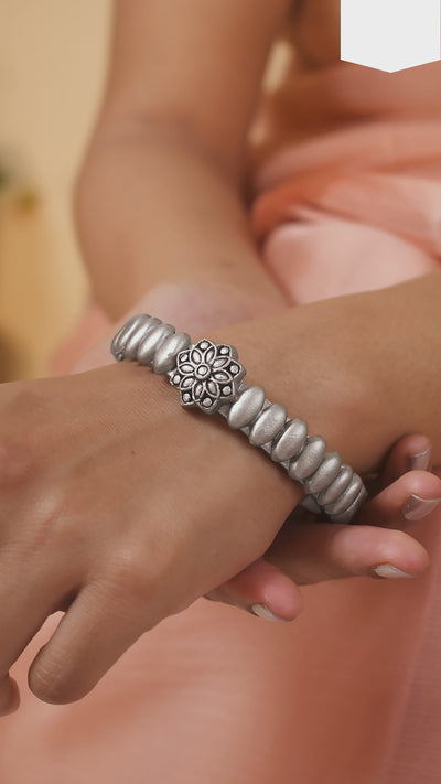 Antique Silver Colour Star Design Handmade Terracotta Bangle