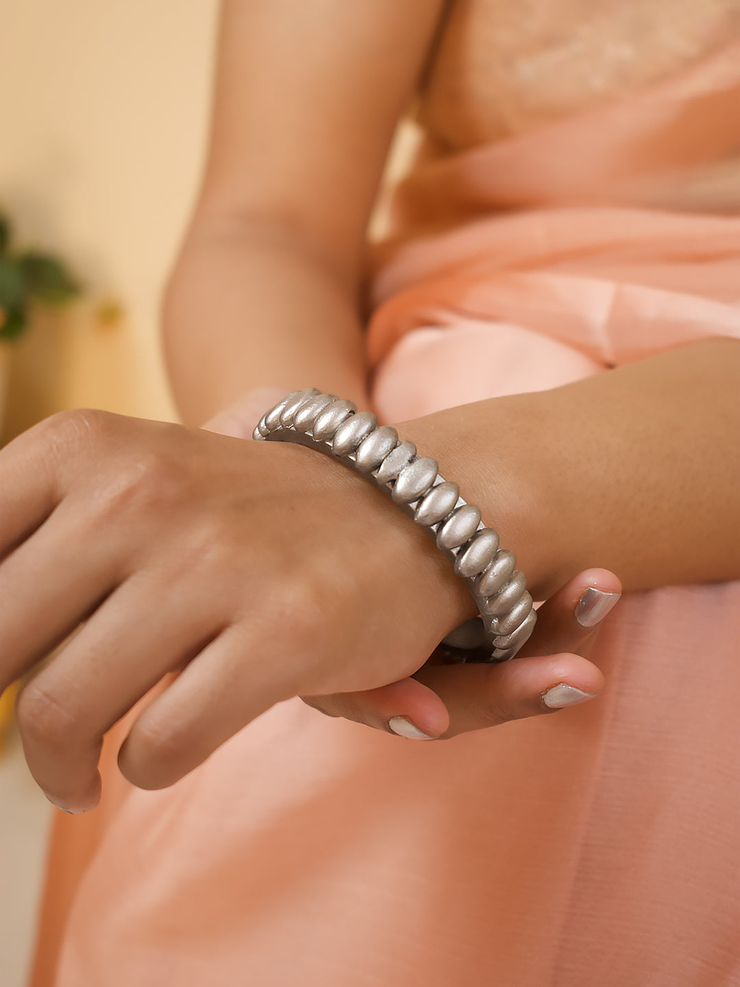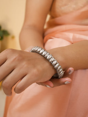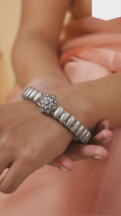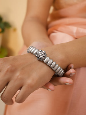 Home Antique Silver Colour Floral Design Handmade Terracotta Bangle
