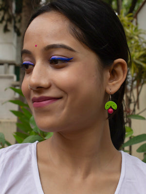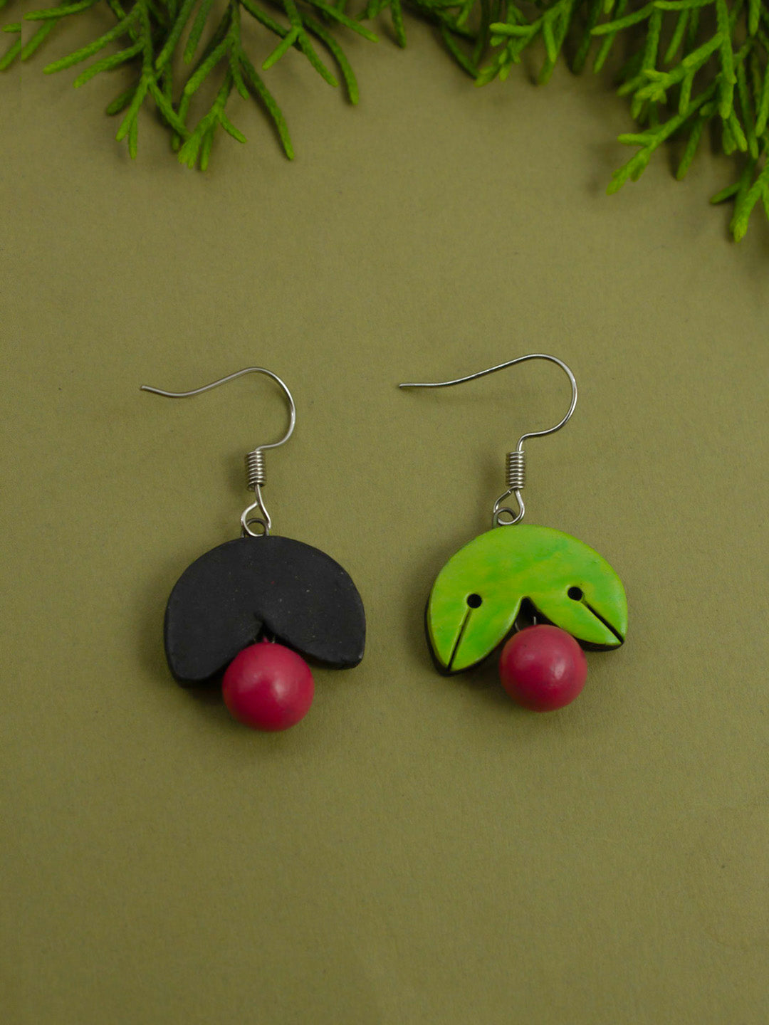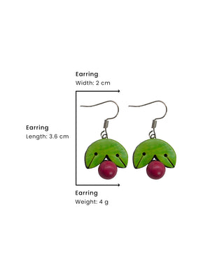 Green Leaf and Cherry Design Handmade Terracotta Earrings