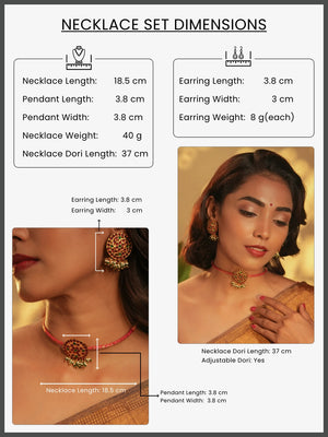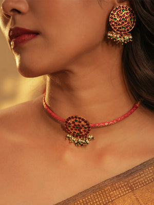 Zariel — Gold Tone Temple Necklace Set- Jada Billa zari/pearl Choker red