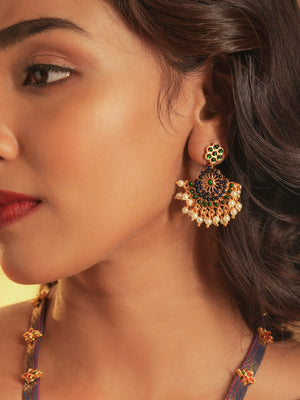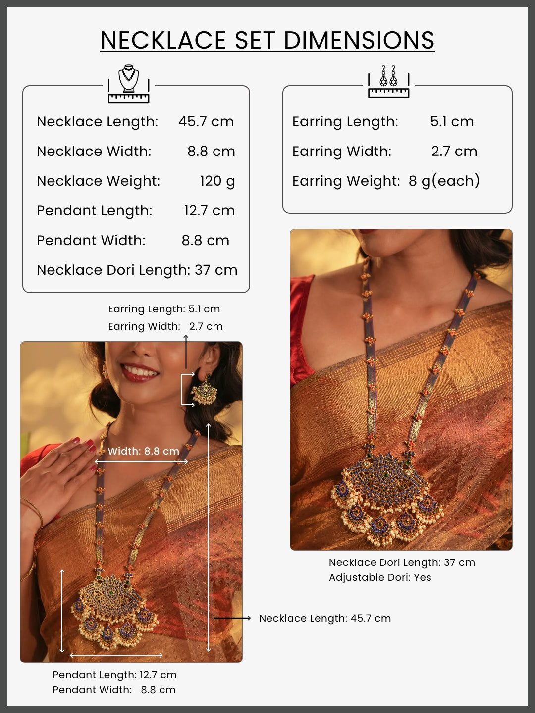 Zarielah — Gold Tone Temple Necklace Set Blue and white Zari haaram