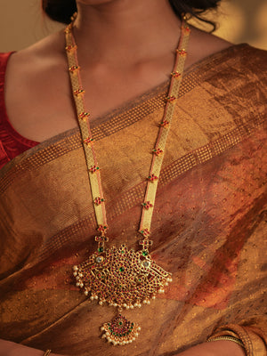 Zarminah — Gold Tone Temple Necklace Set Off-white Zari haaram