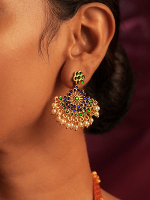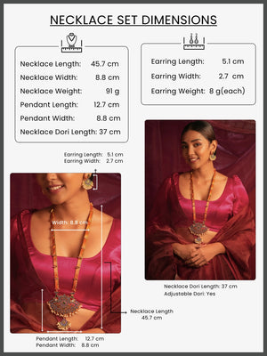 Zarinaaz — Gold Tone Temple Necklace Set- Orange Zari haaram