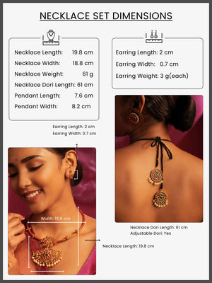 Gold Tone Temple Necklace Set- Pink Haslee