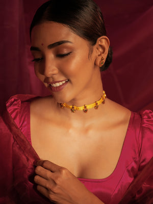 Zarvanya — Gold Tone Yellow Zari Temple Choker Necklace Set