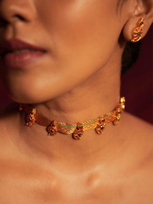 Zarasha — Gold Tone Yellow Zari Temple Choker Necklace Set