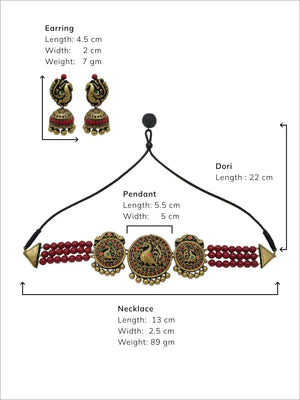 Kanakaprabha — Peacock Design Hand Painted Finish Terracotta Jewellery Set