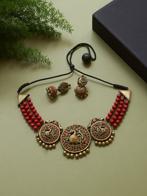 Home Kanakaprabha — Peacock Design Hand Painted Finish Terracotta Jewellery Set
