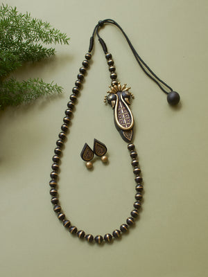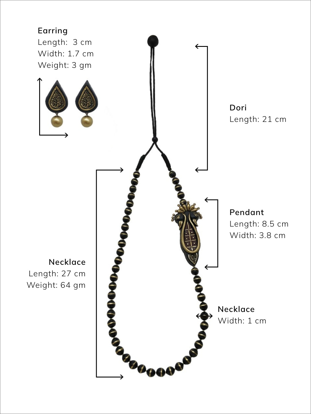 Home Peacock Design Hand Painted Finish Terracotta Jewellery Set
