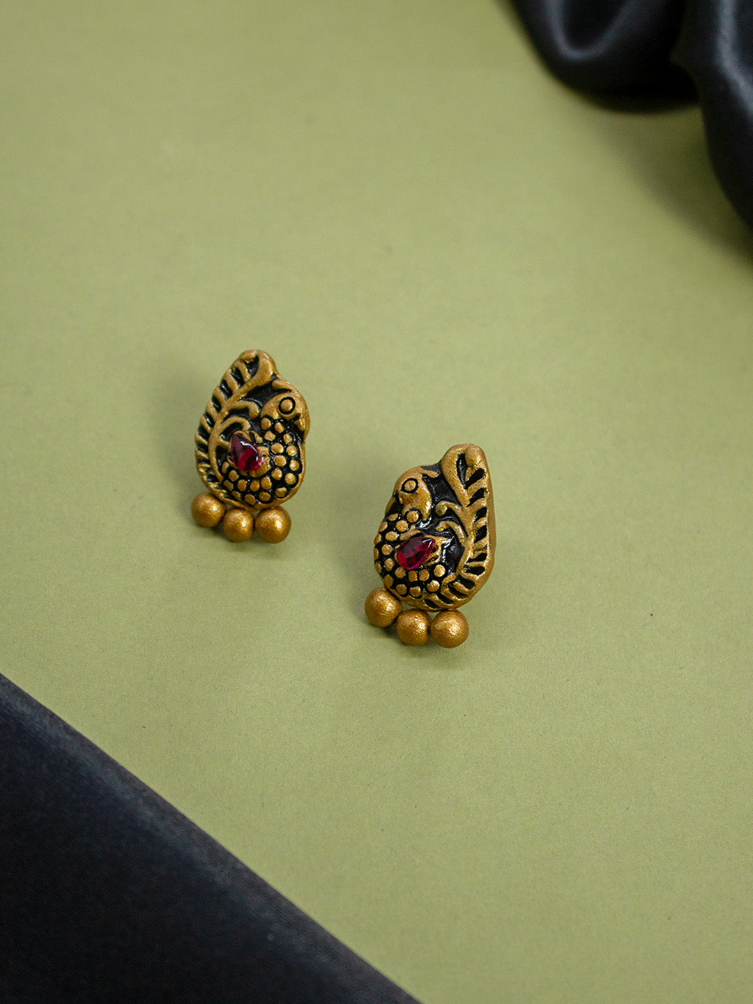Peacock Design Hand Painted Finish Terracotta Jewellery Set