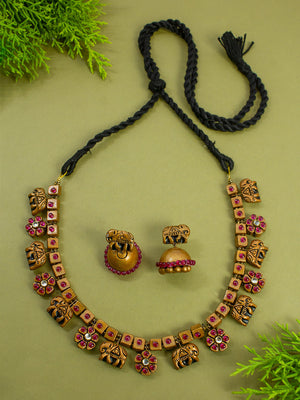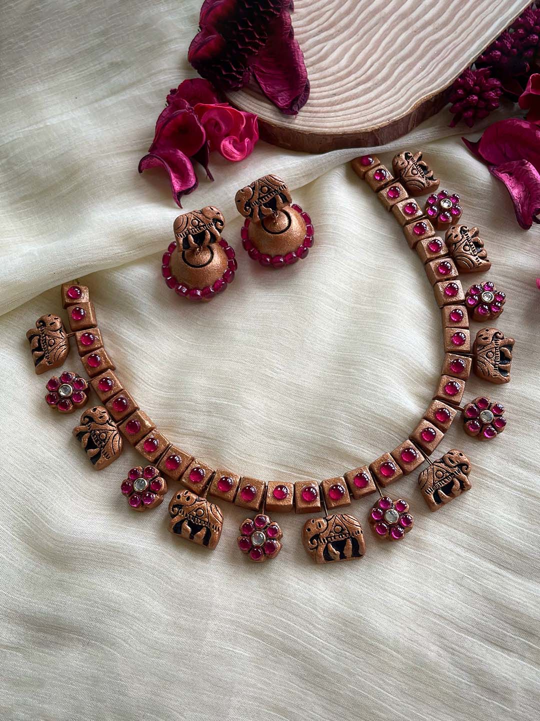 Elephant Design Hand Painted Finish Terracotta Jewellery Set