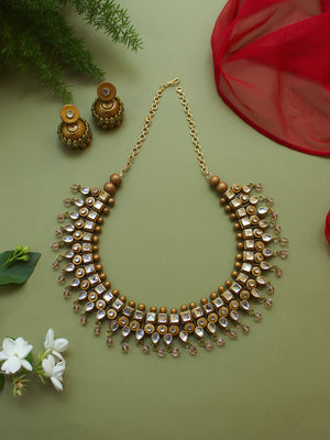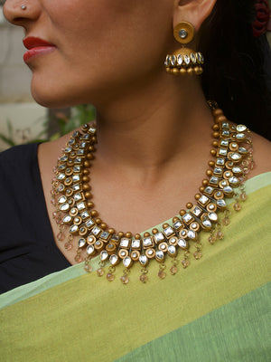 Kundan Stones Gold Premium Finish Terracotta Jewellery Set