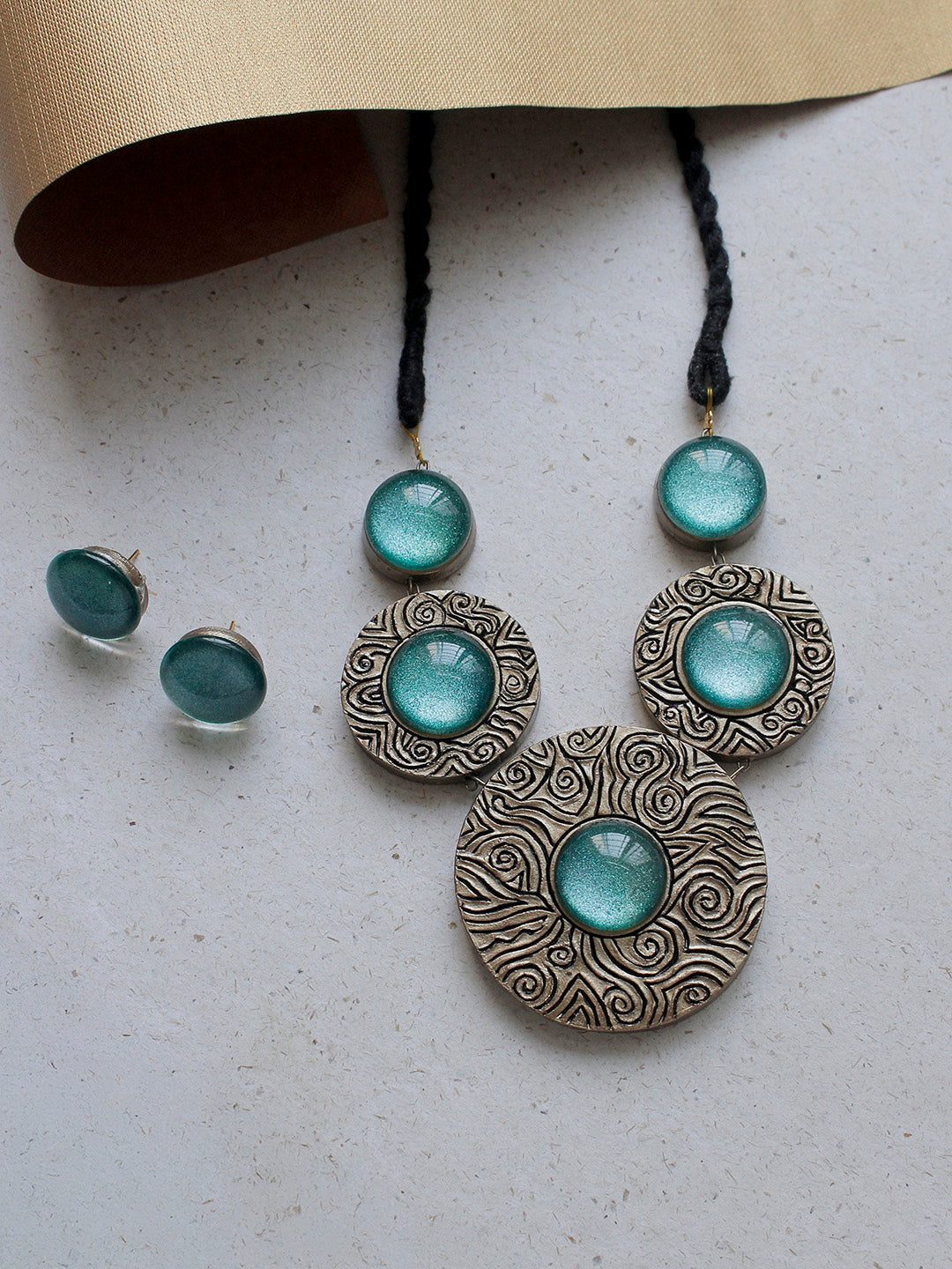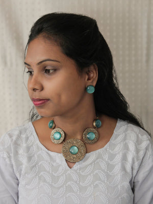 Circular Design Hand Engraved Finish Terracotta Jewellery Set