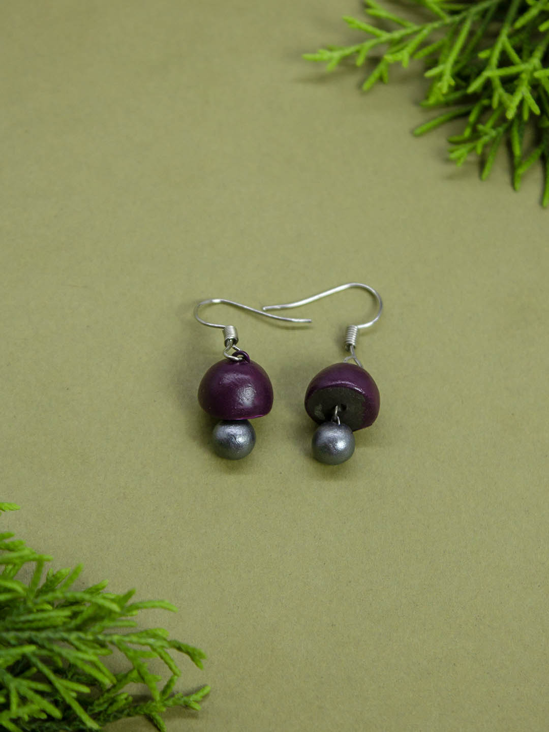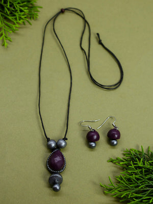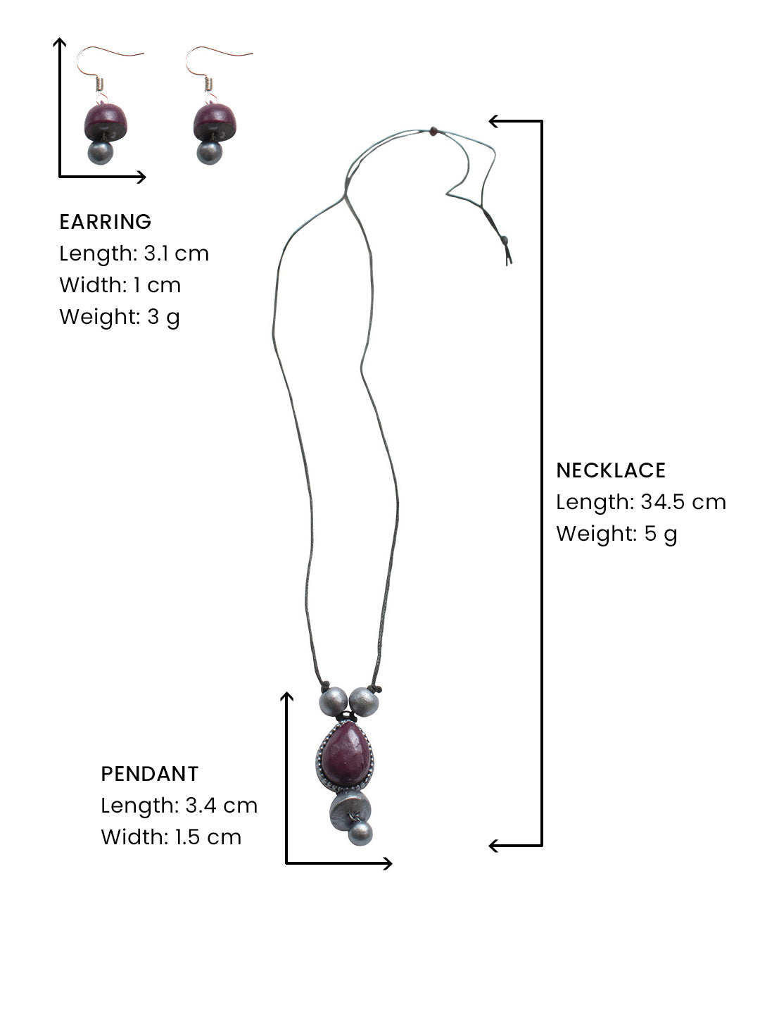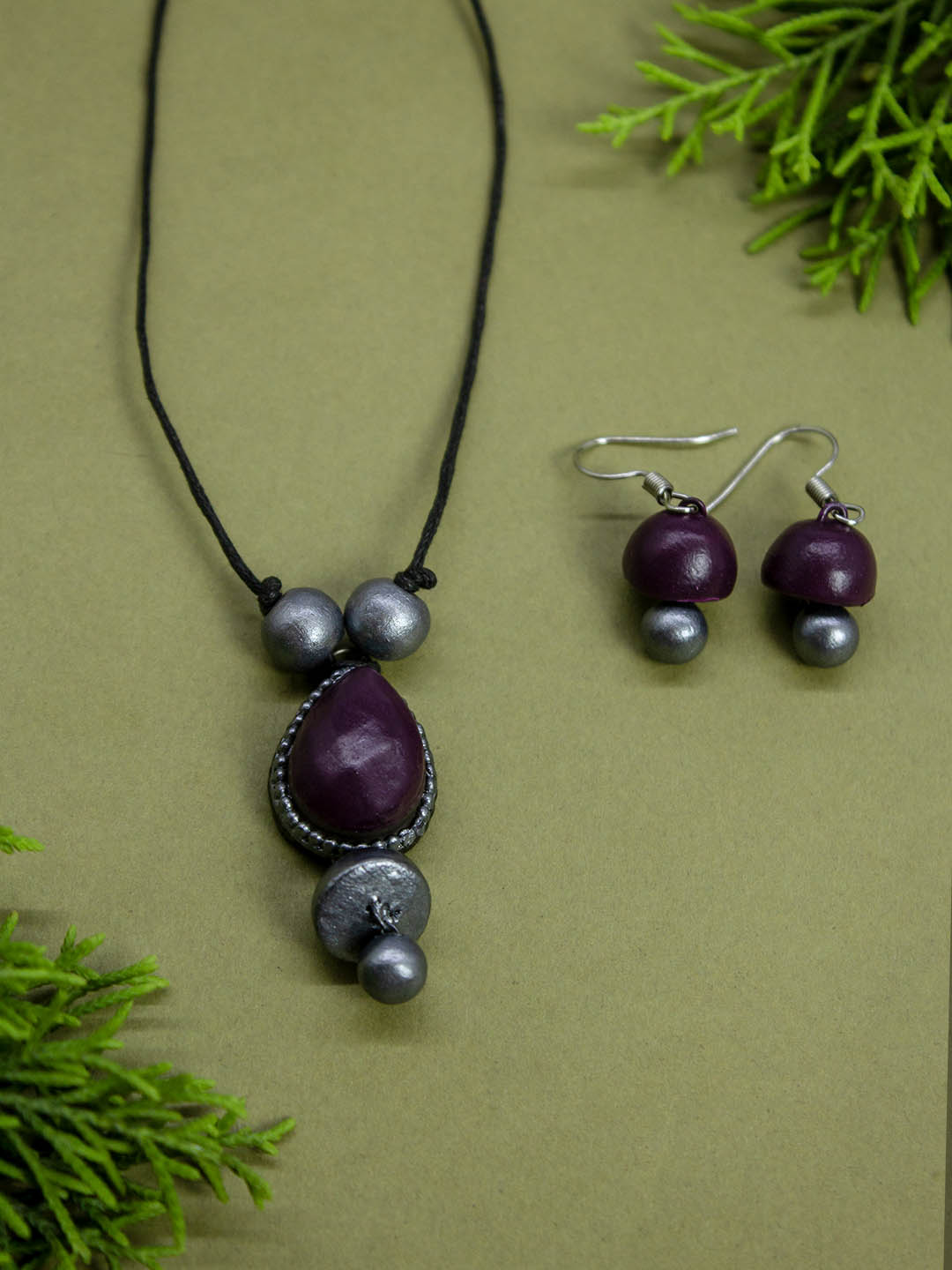Wine Pear Style Jhumka Design Handmade Terracotta Necklace Set