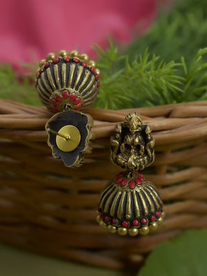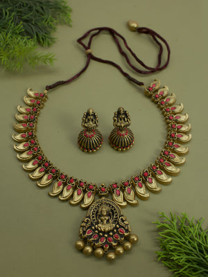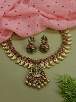 Mango Design Lakshmi Pendant Antique Gold Red Handmade Terracotta Necklace Set
