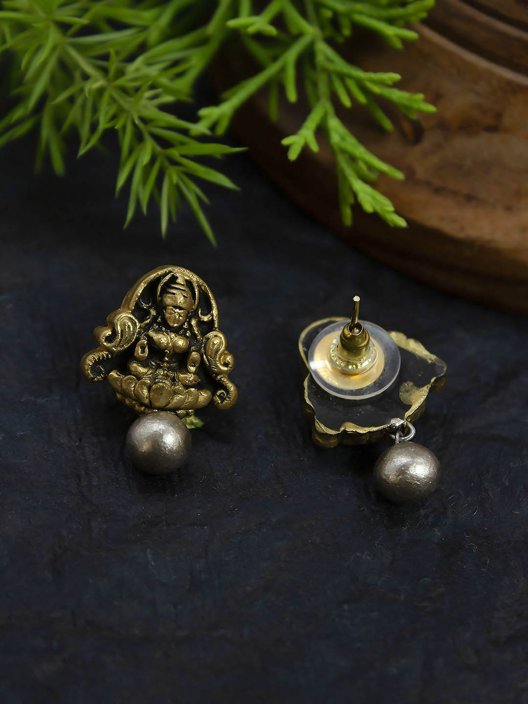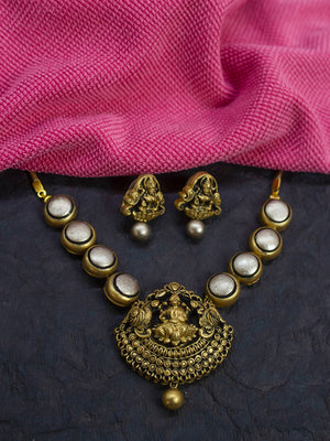 Circular Pattern Design Lakshmi Pendant Design Antique Gold Antique Silver Dual Tone Handmade Terracotta Necklace Set