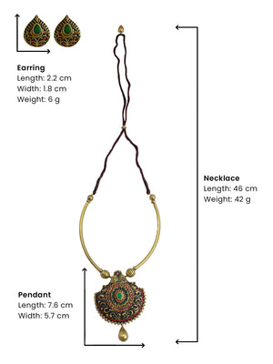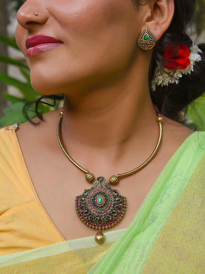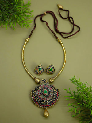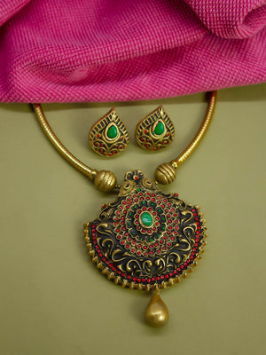 Home Mandala Pendant Hasli Antique Gold Red Green Handmade Terracotta Necklace Set