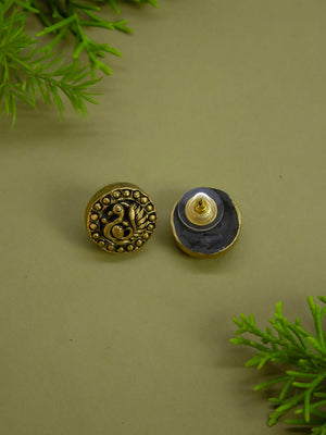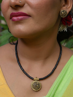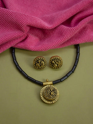Black Tube Design Antique Gold Circular Peacock Pendant Handmade Terracotta Necklace Set