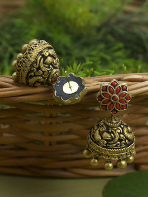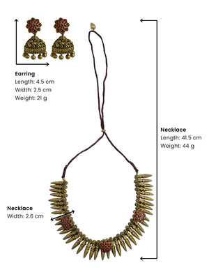 Home Antique Gold Pink Floral Engrossed Fringe Design Handmade Terracotta Necklace Set