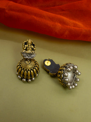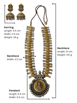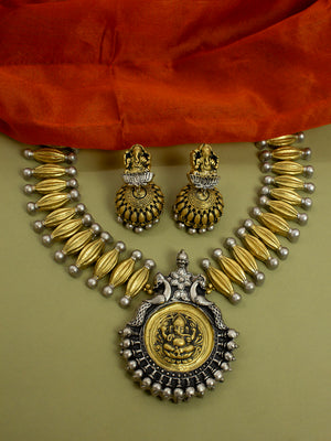 Antique Gold Silver Ganesha and Peacock Design Handmade Terracotta Necklace Set