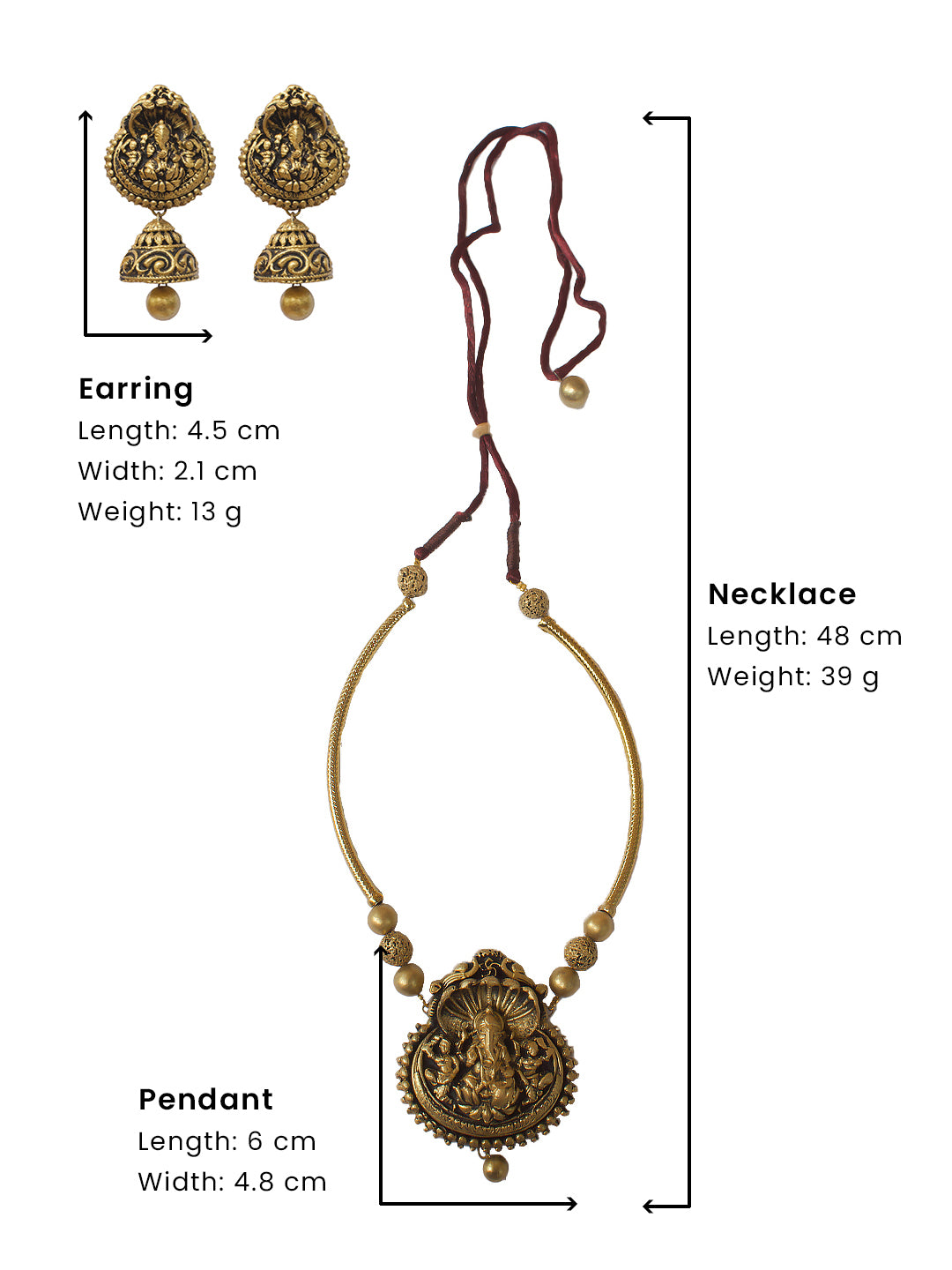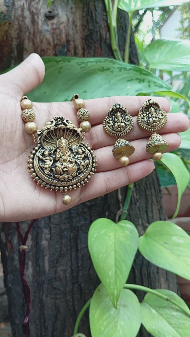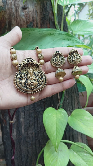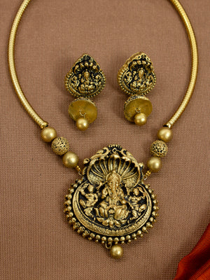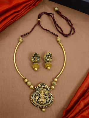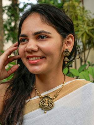 Antique Gold Lakshmi Design Temple Hasli Handmade Terracotta Necklace Set