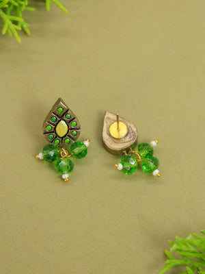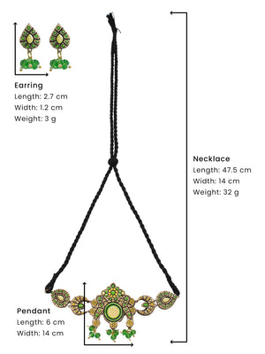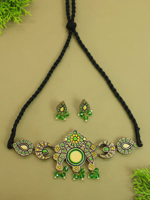 Half Moon Pear Shape Yellow Green Antique Bronze Handmade Terracotta Choker Necklace Set