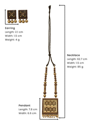 Mandala Art Work Antique Bronze Square Pendant Mala Handmade Terracotta Necklace Set