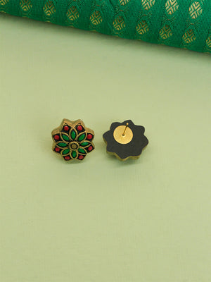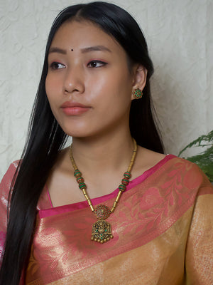 Tarangini — Antique Gold Pink Green Mandala Art and Lakshmi Pendant Temple Tube Design Mala Handmade Terracotta Necklace Set
