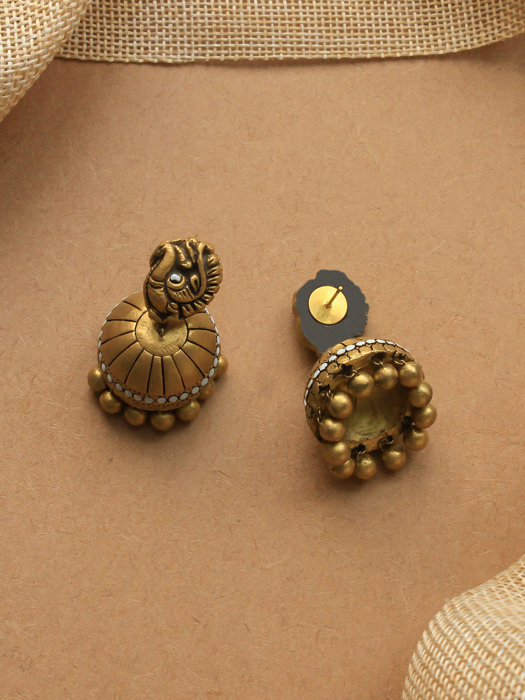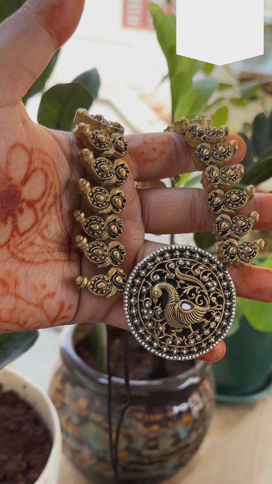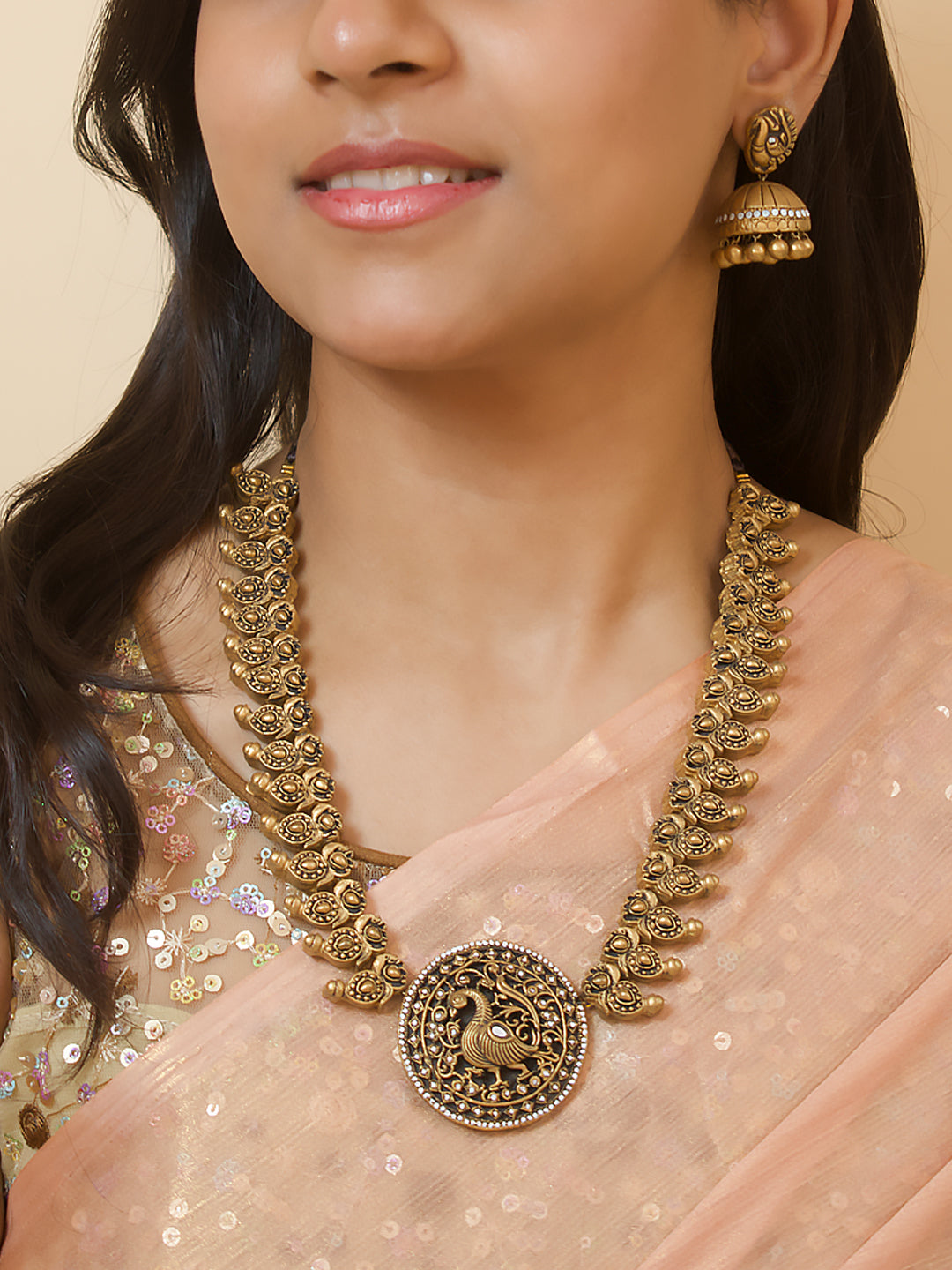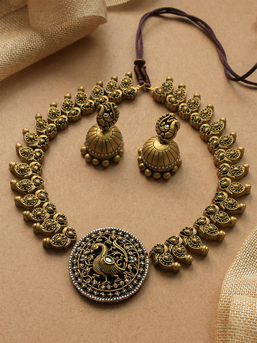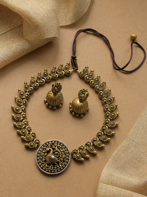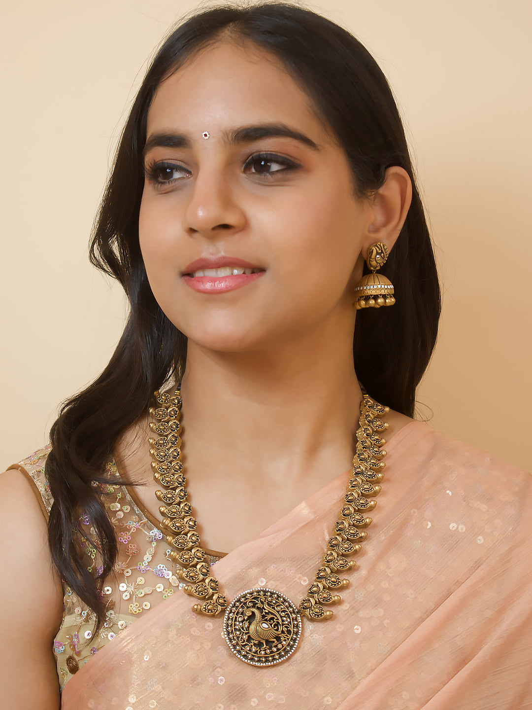 Antique Gold Peacock Mango Design Haram Style Temple Handmade Terracotta Necklace Set