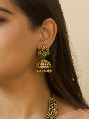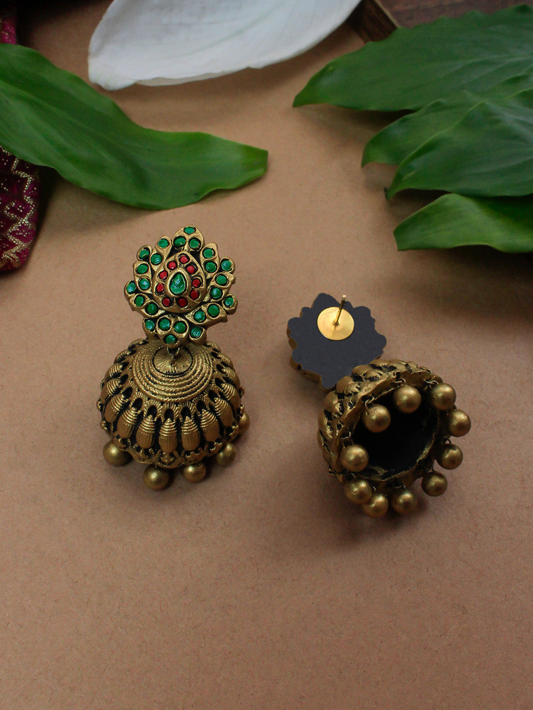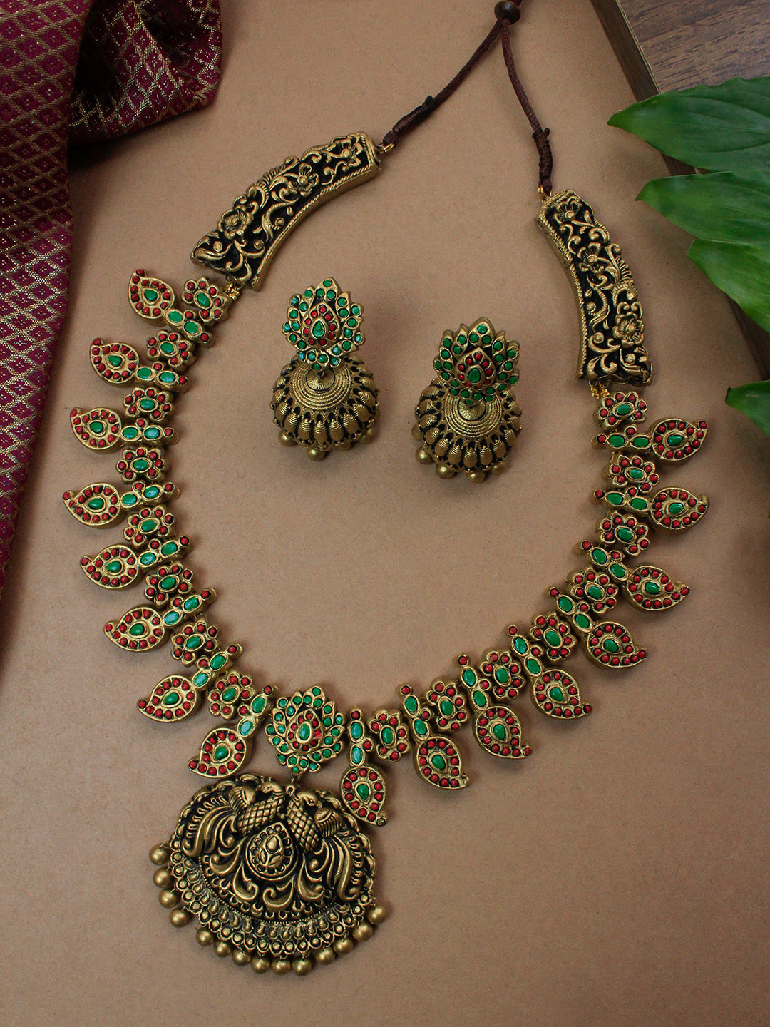 Home Amrapiccha — Mango Design Peacock Antique Gold Red Green Haram Temple Handmade Terracotta Necklace Set