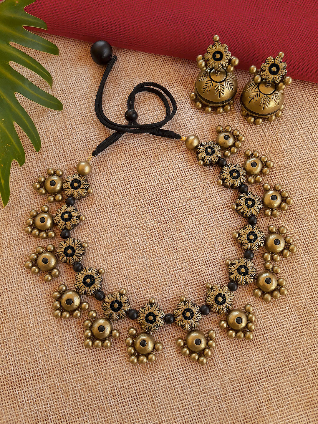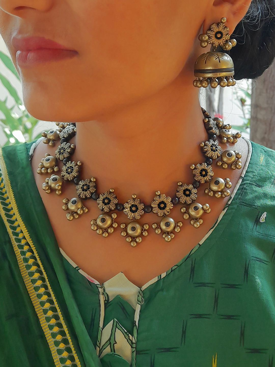 Hemaprabha — Flower Design Hand Painted Terracotta Jewellery Set