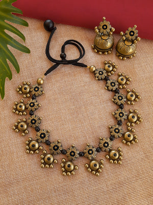 Home Hemaprabha — Flower Design Hand Painted Terracotta Jewellery Set