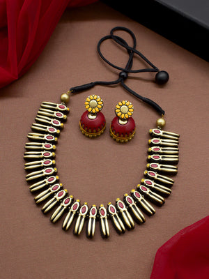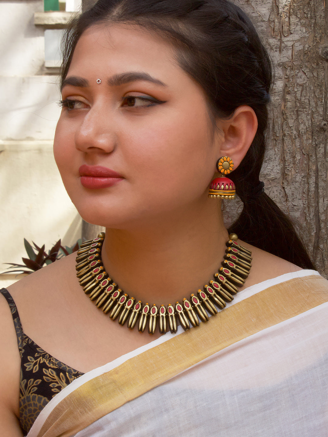 Fringe Design Hand Painted Terracotta Jewellery Set