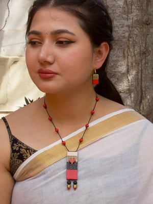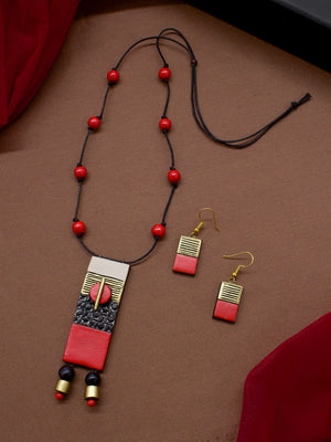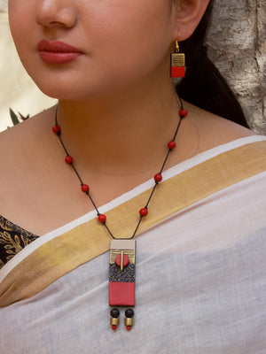 Rectangular Design Hand Painted Terracotta Jewellery Set