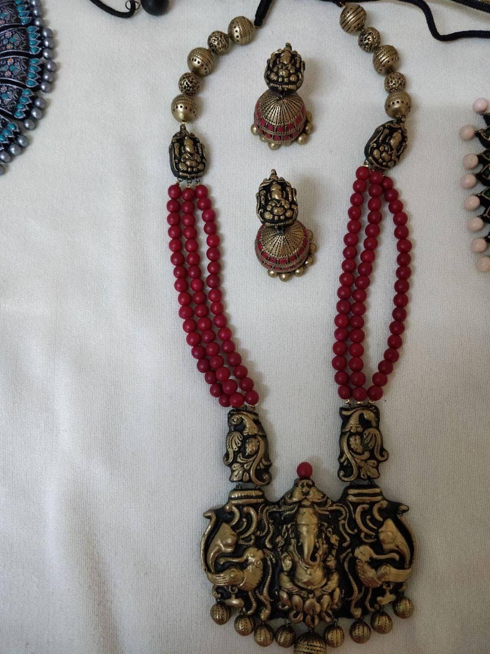 Home Tarunya — Ganesha Design Hand Painted Terracotta Jewellery Set