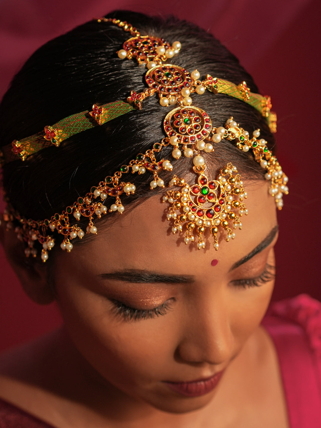 Zarinah — Gold Tone Temple and Zari Mathapatti
