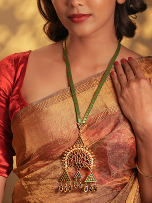 Gold Tone Temple Necklace Set- Brocade Surya Green