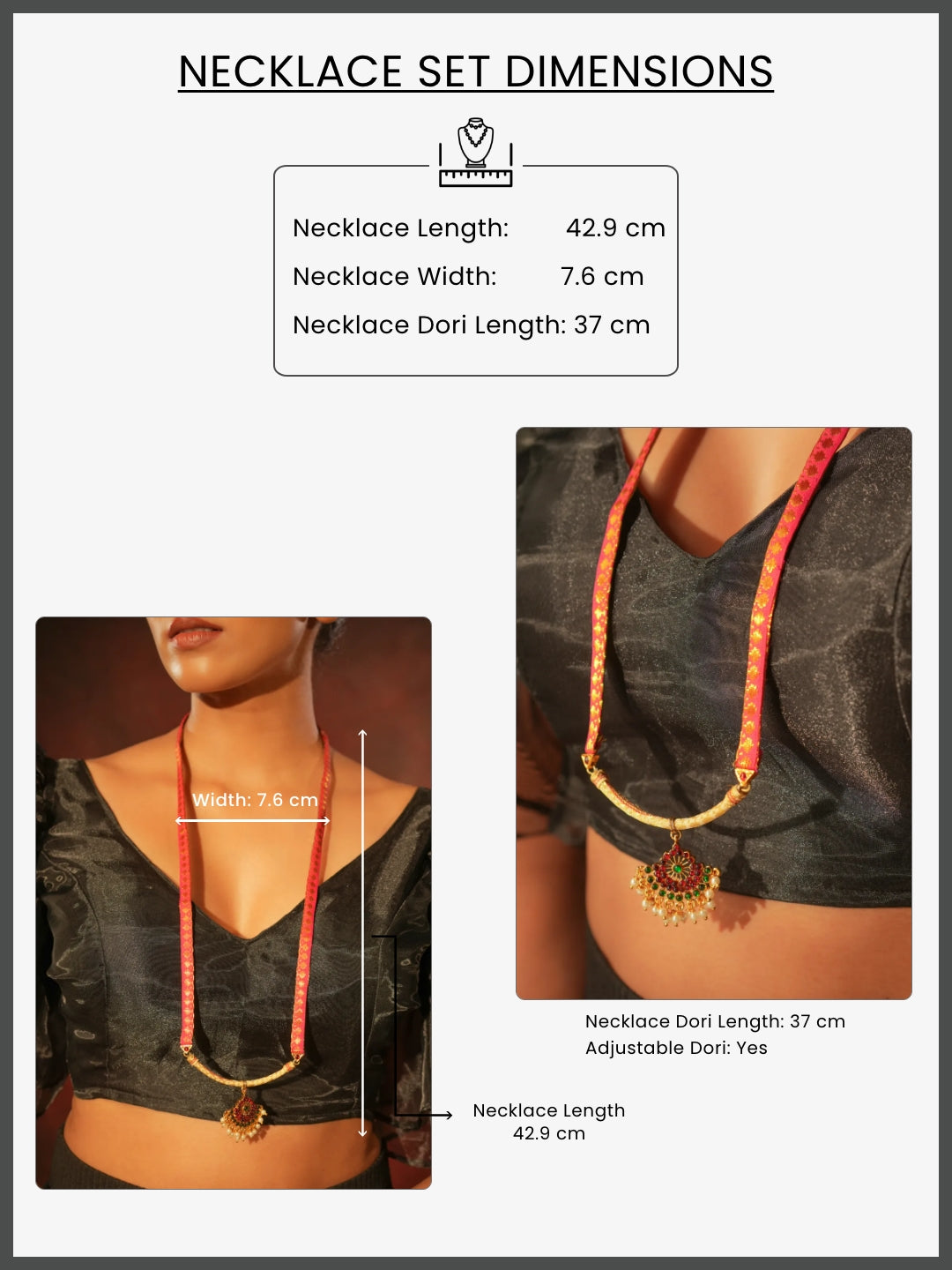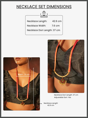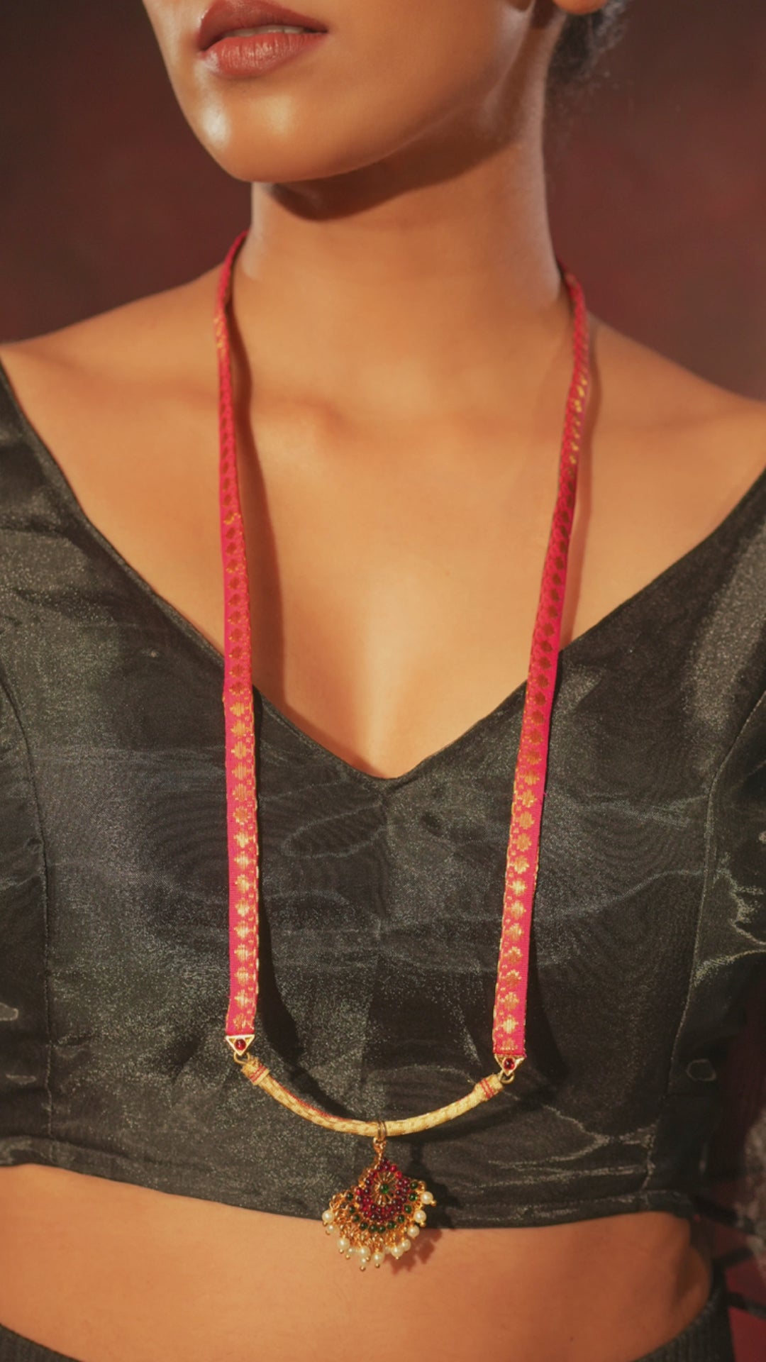 Zaritha — Gold Tone Temple Necklace Zari floral pendant pink Haaram