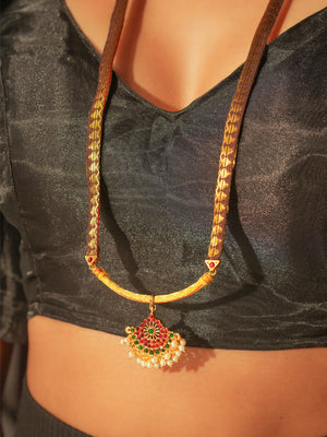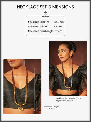 Zariam — Gold Tone Temple Necklace Zari floral pendant haaram brown