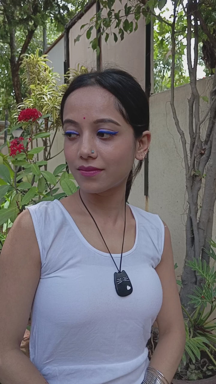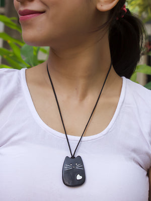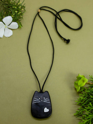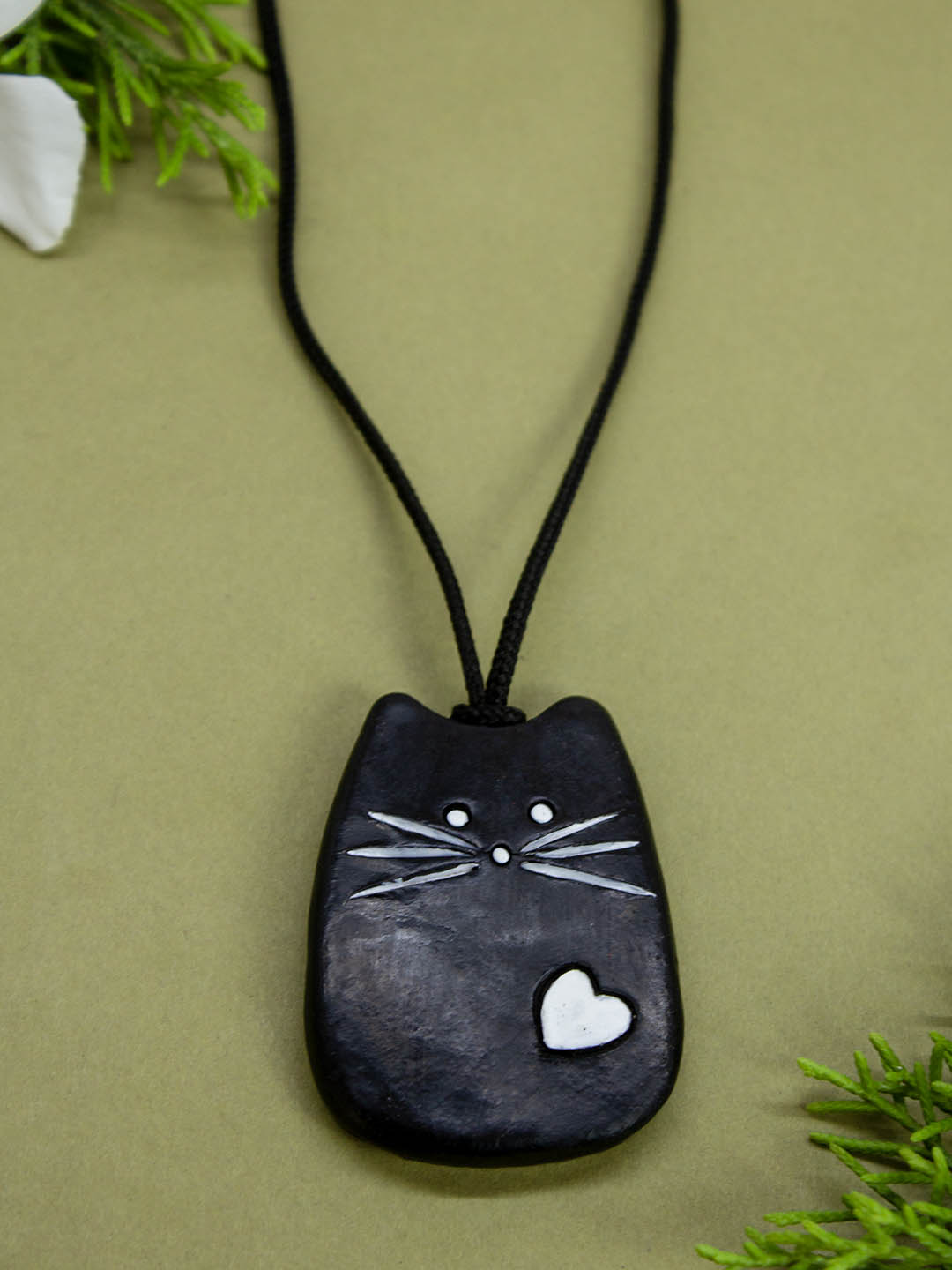 Cat Design Black Funky Kids Handmade Terracotta Necklace