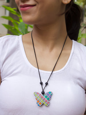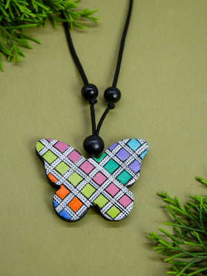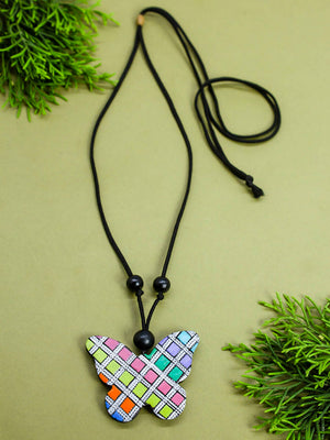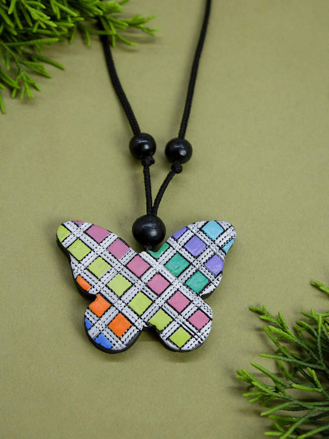 Dancing Butterfly in Pastel Shade Green Pink Yellow Orange Colors Handmade Terracotta Necklace