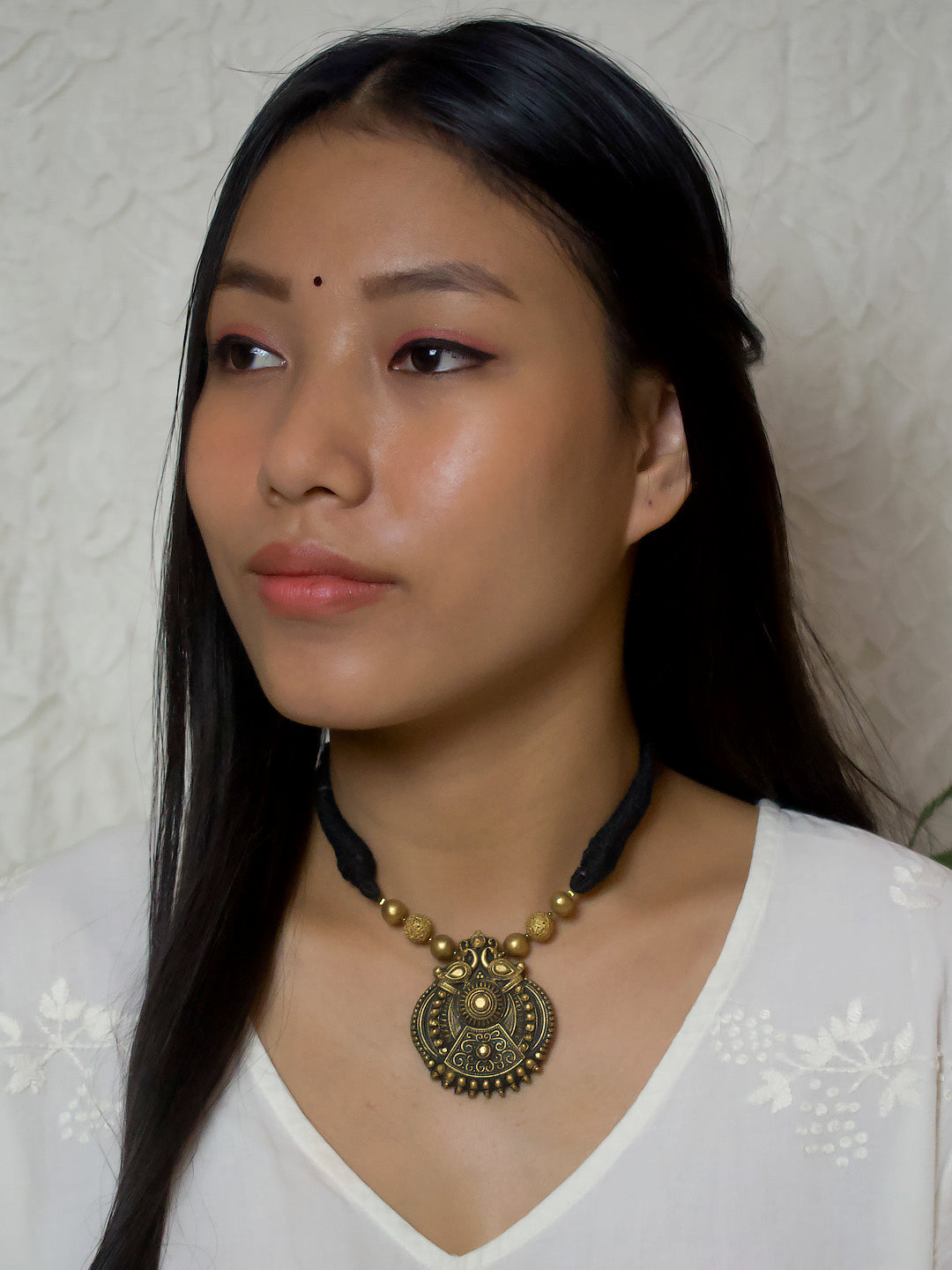Antique Gold Filigree Work Peacock Design Handmade Terracotta Necklace Set