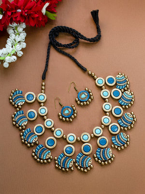 Beautifully Handcrafted Fish Terracotta Jewellery Set in Shades of Blue & Antique Bronze